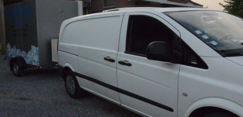 Eveneens kan er een Mercedes Vito bestelwagen gehuurd worden om de koelwagen op locatie te brengen.